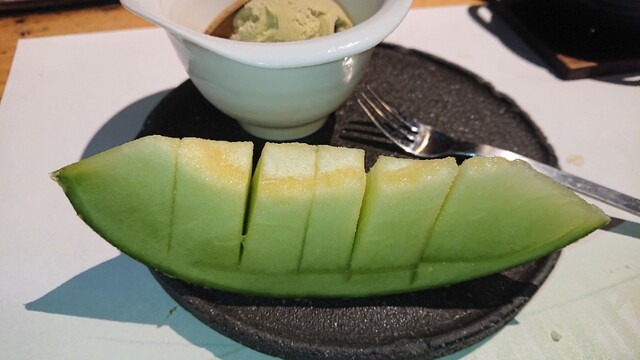 デザートはピスタチオのアイスクリームとメロン。贅沢な晩餐でした。