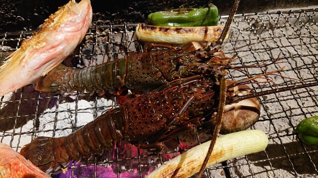 今回の炭焼きのメインは伊勢海老、サブはカンパチのカマでした。どちらも、ちょうどいい塩加減でおいしくいただきました。