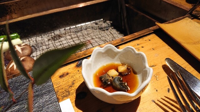 ちょうどいい焼き加減で焼いてくださいますので、ご主人の指示に従っていただきます。鮑のおいしさは言うまでもなく。バターなどは一切いらない自然の塩味で十分なおいしさです。