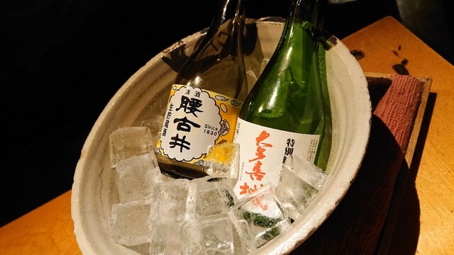 腰古井をいただきましょう。大きな器に、たっぷりの氷で冷やしてもって来てくださいます。冷たくて、きりっとして、夏の夕暮れにぴったりです。