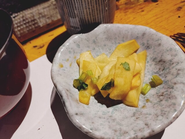 栄螺の肝をさっと煮付けたもの。苦味が心地よいです。日本酒が飲みたくなります。