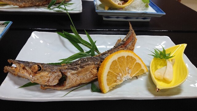今回も大きなカマスの唐揚げが印象に残りました。二度揚げしているとのこと。頭から尾まで、ザクザク食べられます。ビールが進みます。