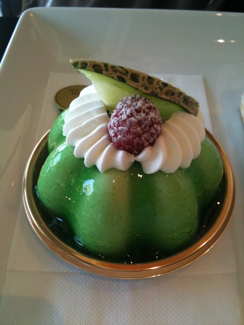 パラディはメロンのケーキでした。全体ムースで中にベリーのソースが入ってうまい。