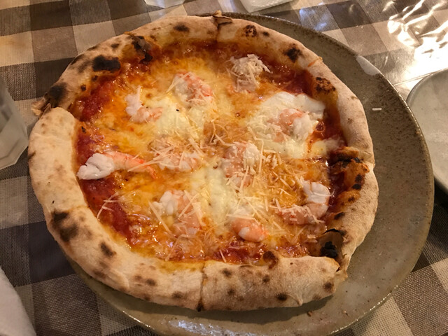 最初のピザです。エビは多くはありませんが、チーズがよく延びて美味しいです。生地は薄いがもちもちして、小麦の風味がしました。