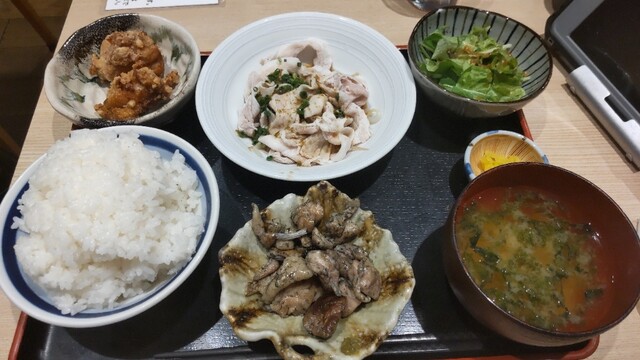 豚生姜焼き 若鶏もも竜田揚げ 若鶏 もも炭火焼き 1,100円をオーダーしました。