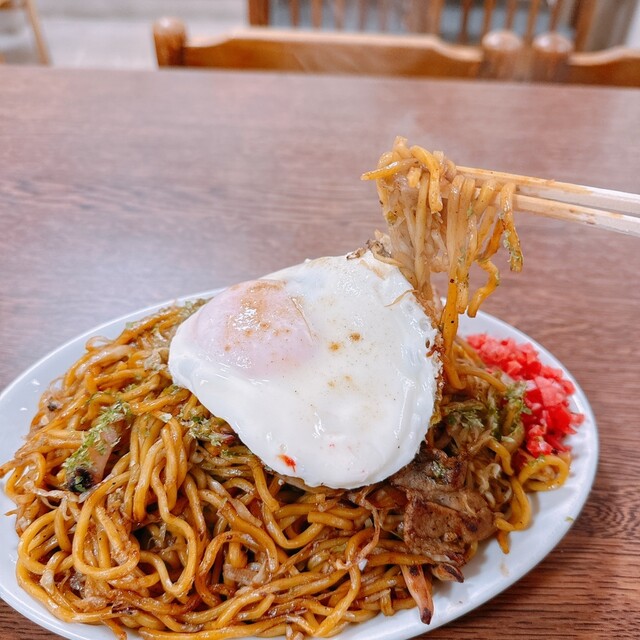 「三色大盛焼きそば」を食べる