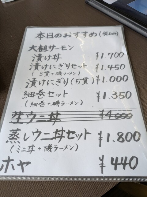 今日は久しぶりに磯ラーメン。蒸しうに丼セット。