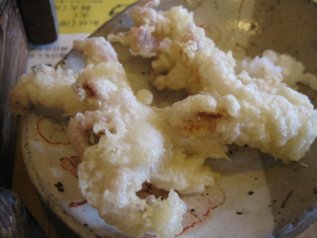挽き包みの冷やがけ大とゲソ天。