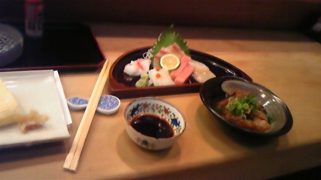 お造り盛り合わせ(イカ、トロ、かんぱち、だったかな)