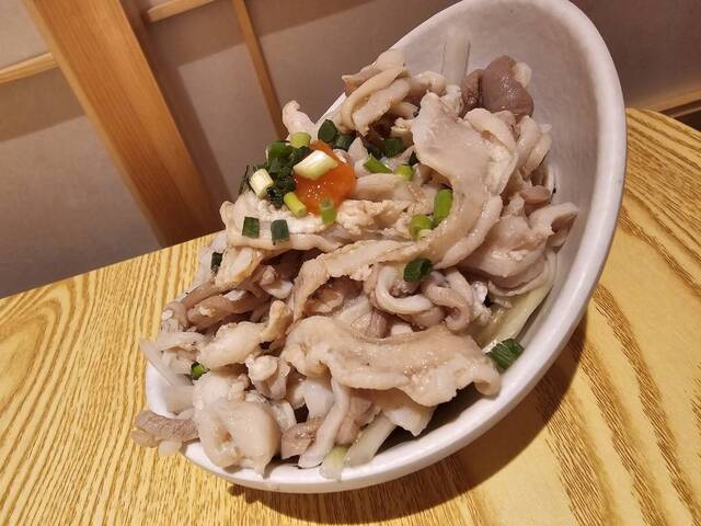 さっぱりした後は、どうしても揚げ物が食べたくなり蛸の唐揚げも追加。熱々でカリッと揚がっており、お酒にもよく合います。さらに酢モツも頼んで、最後までしっかり楽しめました。個室でゆっくり食事したい時や、色々な料理を少しずつ味わいたい方におすすめです。