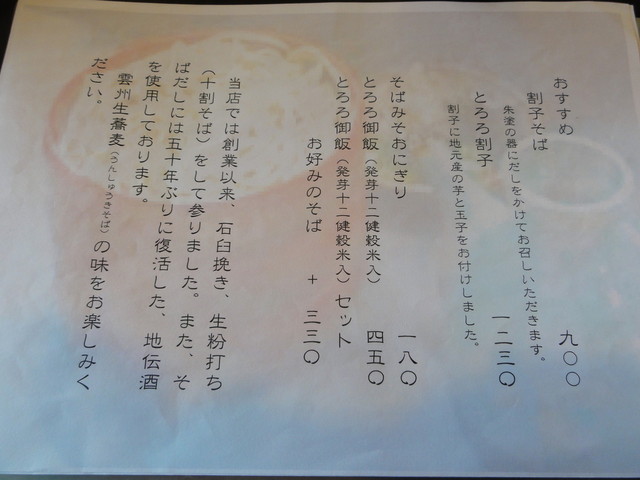 前回は、割子(地物)を頂いた際、初めてそばの香りを満喫し、
