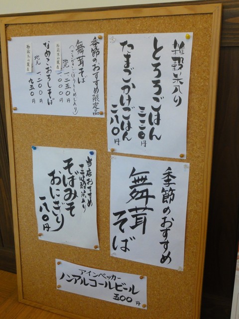 前回と同じ席に座り、店内を眺めていると「新そば打ち始めました!」の張り紙。