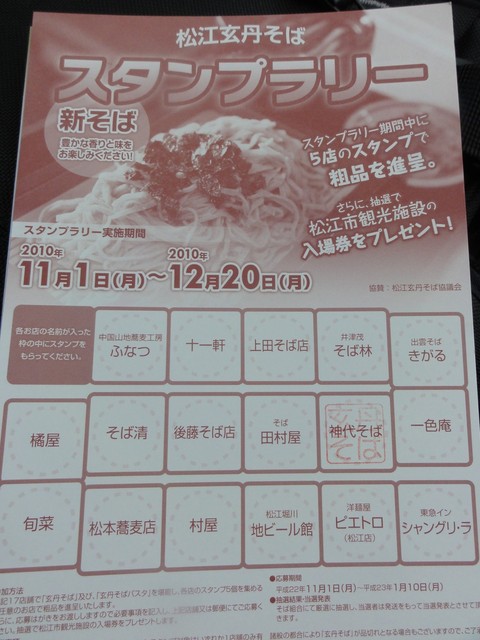 11月1日~12月20日の間、松江市内の17店舗で、玄丹そばのスタンプラリーをやっていらっしゃるみたいです。