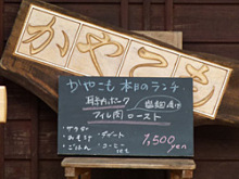 レストランの名前である「かやこも」は地元、宝珠山の地名の由来にもなった岩屋神社の御神体を包む「茅薦」からとったのだそうです。