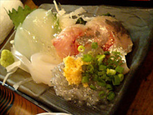 刺身の3点盛りはアジ、生シラス、イカでした。