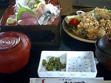 ということでおススメランチの刺身+鳥の唐揚定食 1,050円をオーダー。