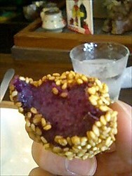 紅イモを丸くしたものをごまで覆い上げてあり、揚げたばかりで温かくておいしかったです。