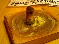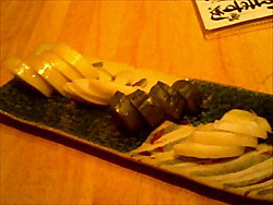 そして、魚を美味しく食べていただきたいということから静岡産の無農薬山葵を仕入れ、お客が自分ですってお刺身を食べるんです。