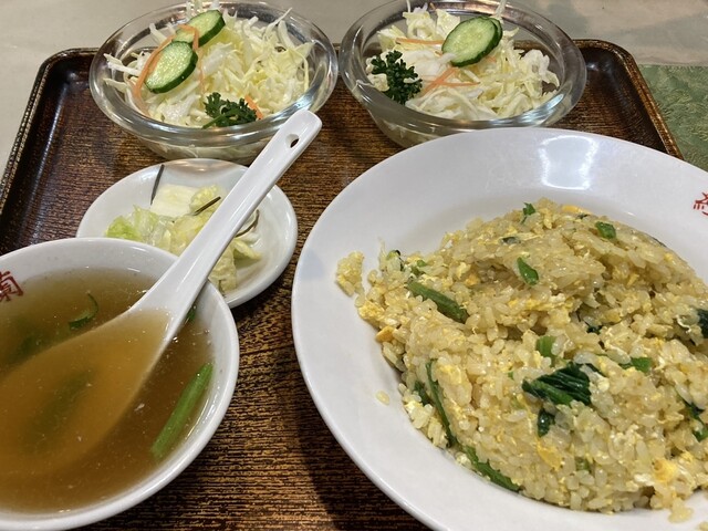 ほうれん草チャーハン:2人で1つ頼んだからか、サラダを2個に分けて出してくださいました!
