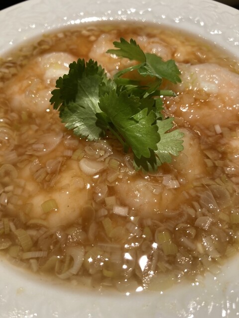 2回目の訪問は海老豆腐を注文。小ぶりの鍋で提供されたのは、豆腐に海老が盛られ優しい餡がかけられたRenRyuのスペシャリテです。