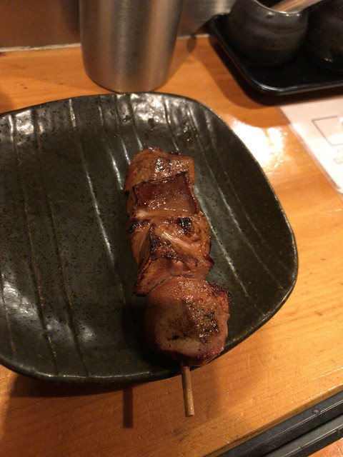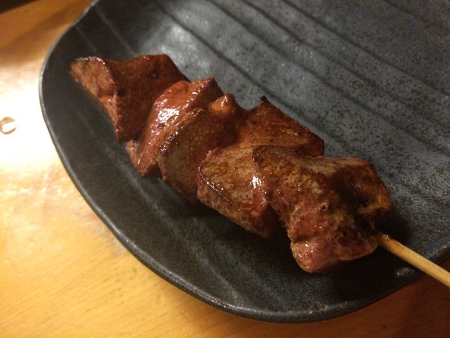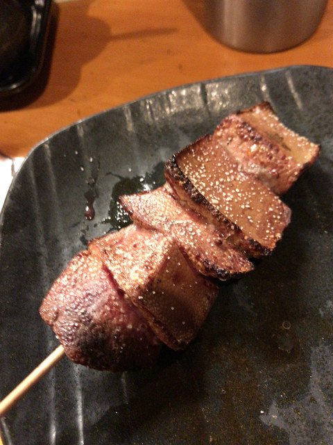 この日注文した串焼は、レバー(豚)、上ナンコツ(豚)、