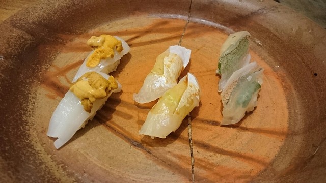 お店の方の接客も程よくフランクでいい感じです。余談ですが寿司店には珍しく板前服の若くて美人な女性がいて、美味しい料理に花を添えてくれました。