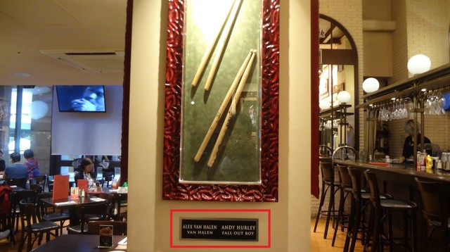 Hard Rock Café お馴染みの Rock musician の 所有物が展示品。