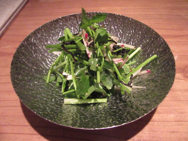 お通し「芹の胡麻和え」「独活の金平」(2016/3)