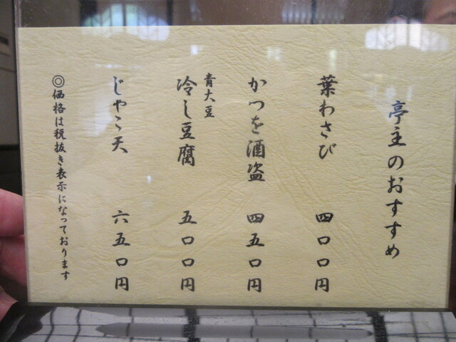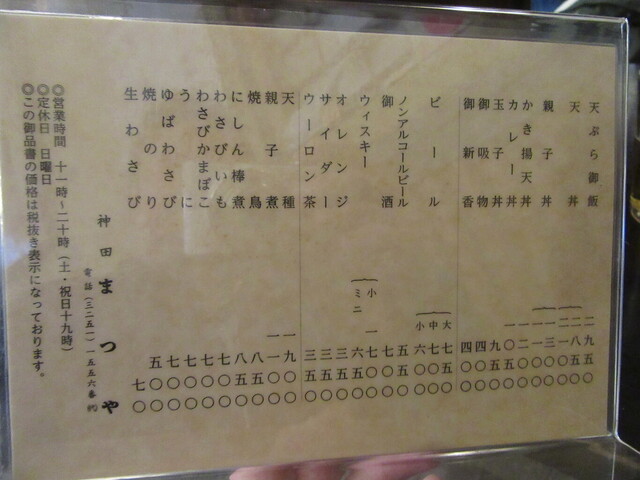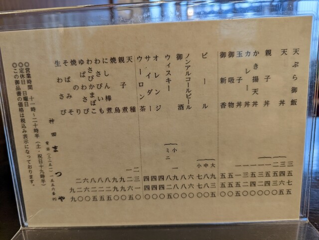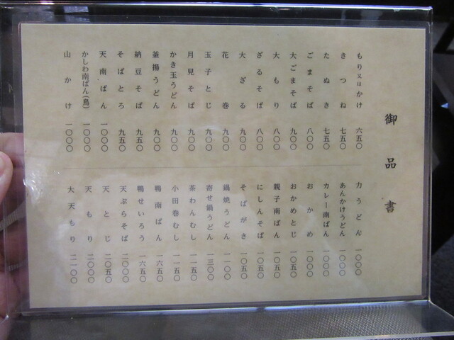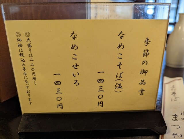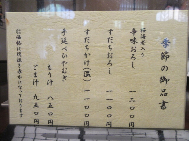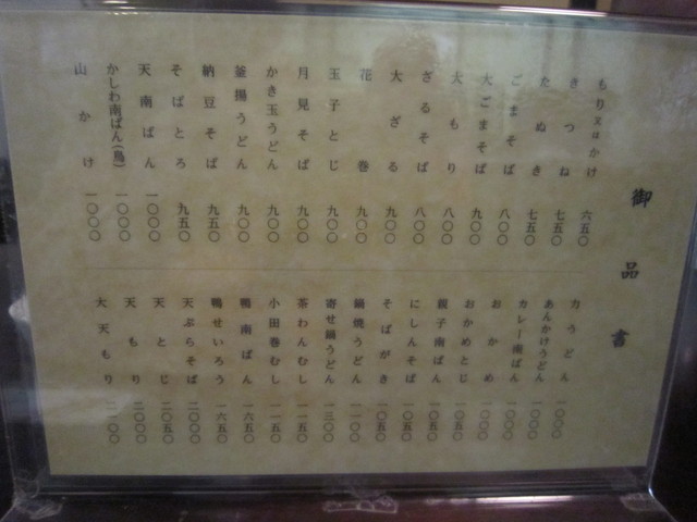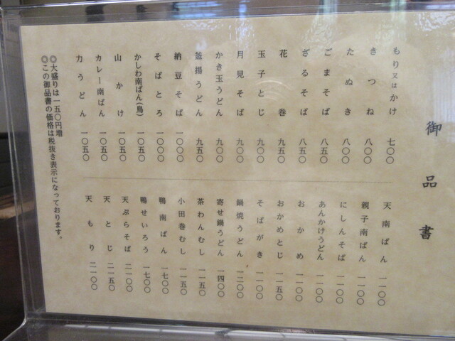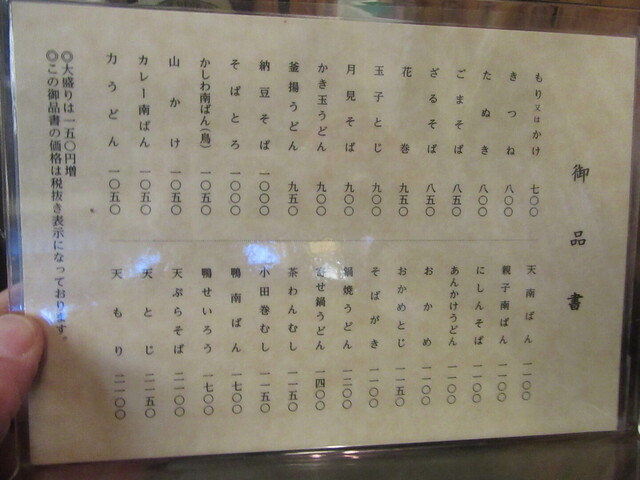 蕎麦の品書き:若干の値上げ