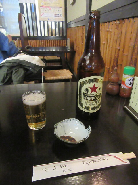 まずはビールを頼もうと3社を訊かれて思わず'サッポロ'と答えたが、てっきり中瓶が出てくると思いきや大瓶の「サッポロラガー」の登場に驚く。