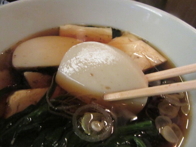 蕎麦が無い分、結び蒲鉾が一片入っているのが「抜き」のお約束。