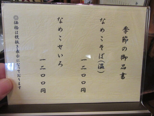 蕎麦は最近品書きに加わった「なめこせいろ」を注文。