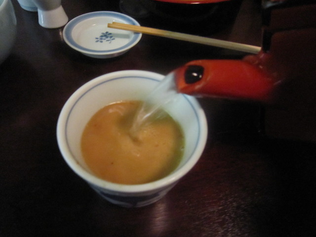 蕎麦湯を「ごまつゆ」に注ぐ