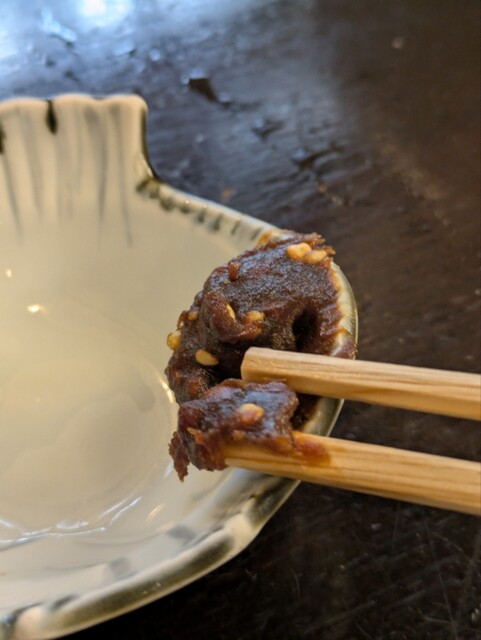 お通しの「蕎麦味噌」も相変わらず美味い。