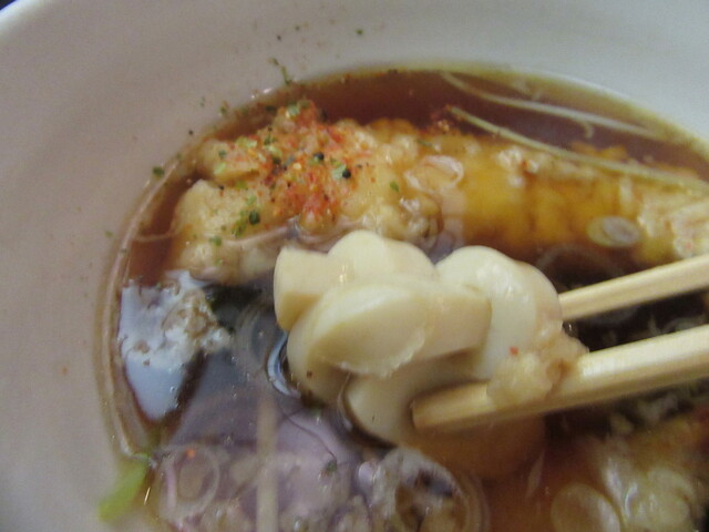 そばを「揚げ玉入りつゆ」で