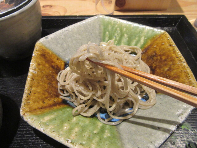 以前から述べているが、こちらでは氷水でキンキンに冷やされていないので、その分香りが立っており、蕎麦自体の甘みも存分に感じられる。