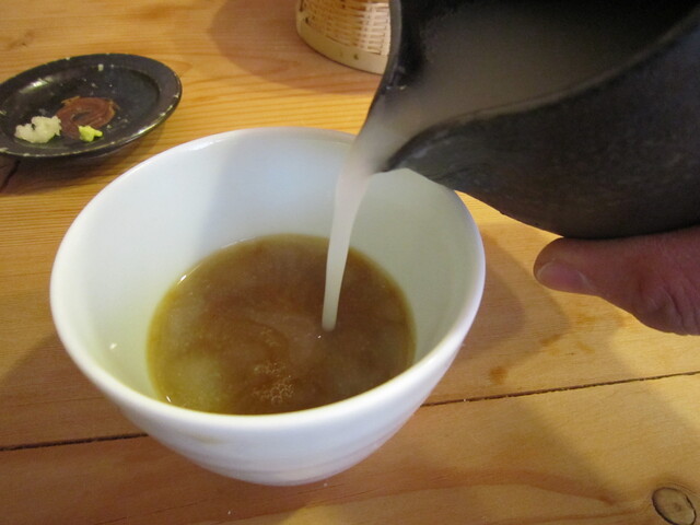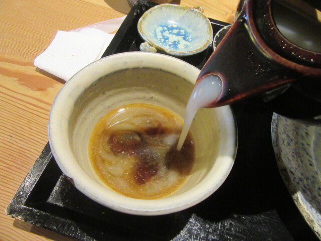 「蕎麦湯」には結構な粘度が添加されているが、つゆの旨味のおかげで美味しく感じられた。