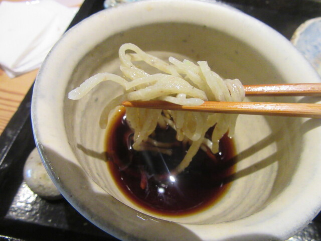 こちらでは一旦氷水で〆たものを、「化粧水」と言う常温の水にくぐらせ後、水切りをしてから盛りつけるひと手間が施されていると思われる。
