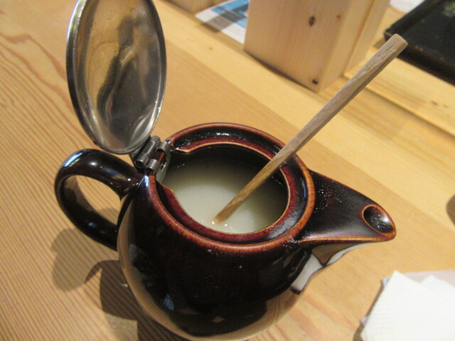 蕎麦湯は別仕立てで、白濁しかなりの粘度が付加されている。