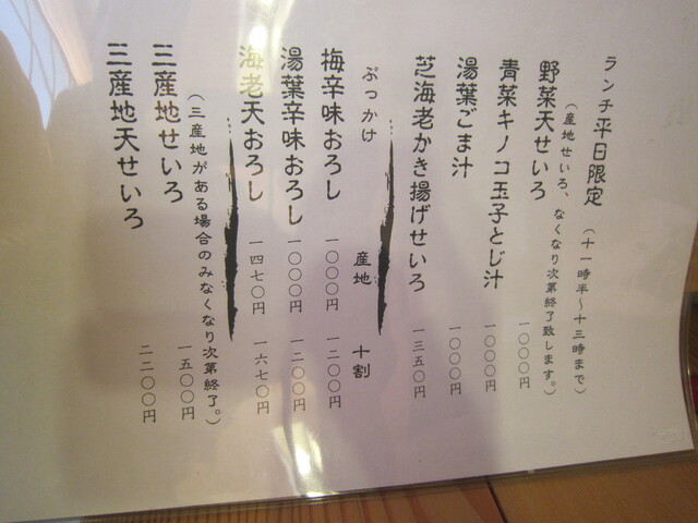 今回は「手刈り天日干しの手碾き」は無いとのことで、こちらも'限定'が付されている「手碾きせいろ」を選択。