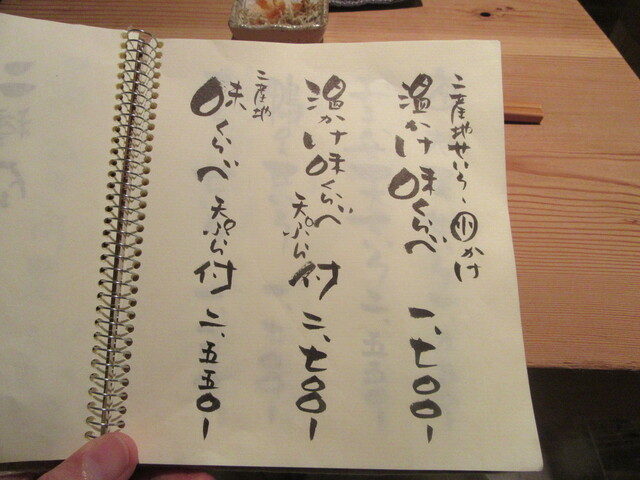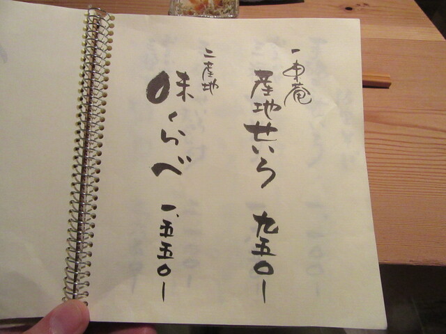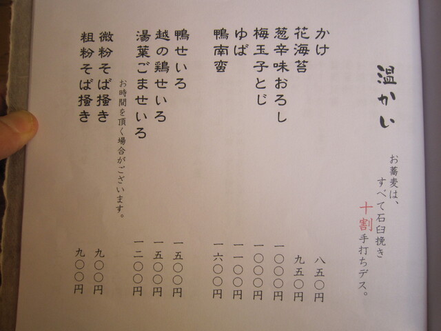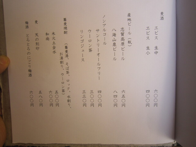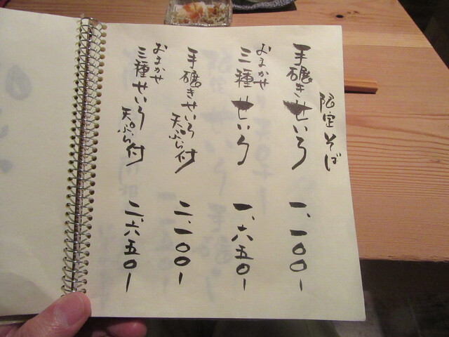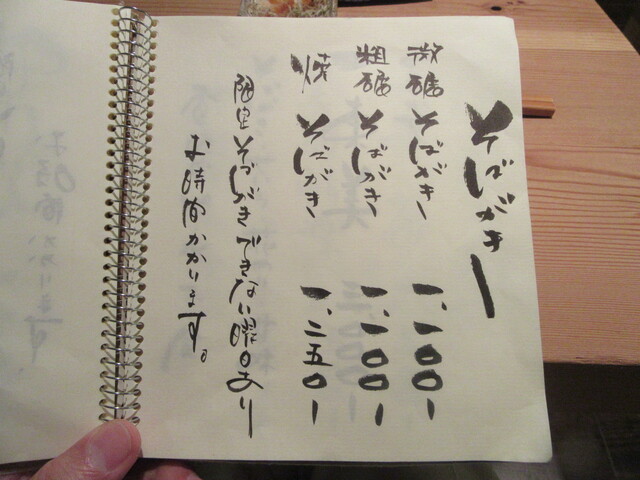 こちらでは産地や品種の違いで常時数種類が打たれ、さらに'手碾き'もあり、それらを組み合わせて品書きはやや複雑になっている。