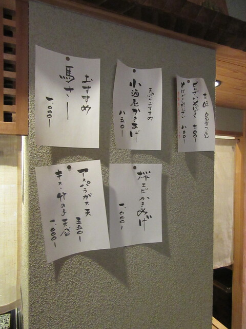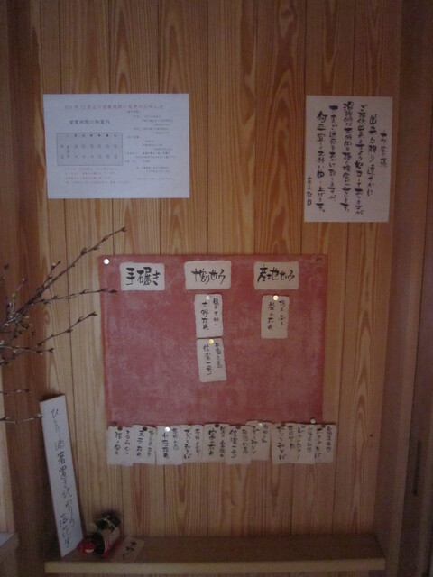 肴は品書きに並ぶ定番の他におすすめの品々が半紙に手書きされて壁に貼られており、女将さんも勧めてくれる。