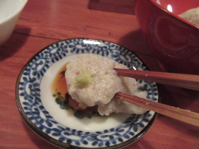 「蕎麦がき」:金砂郷の常陸秋そばの粗挽きを使用し、練り上げたものを一度湯掻いてからお椀に盛られて登場。