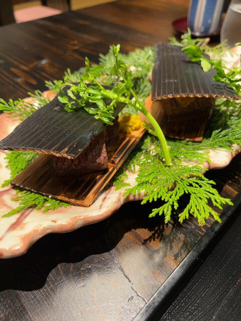 甲州牛の杉板焼き