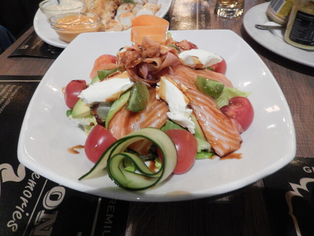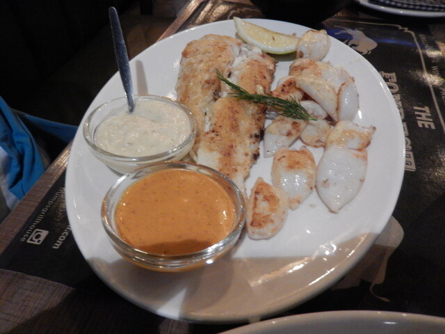 妻と2人で行きましたが、最初にサラダ、その後にメインとして私がダチョウのステーキとサイドでほうれん草のクリーム煮、妻が白身魚(hake)とイカのグリルをいただきました。分量的にはこれで十分だと思います。ダチョウはとても食べやすく、日本では食べられない味。再訪したいです。