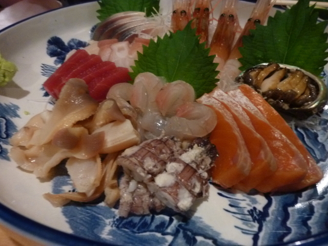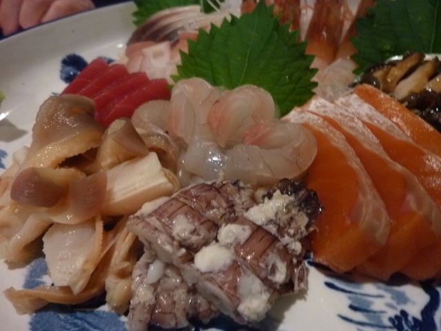 お刺身のシャコ、北寄貝、秋鮭