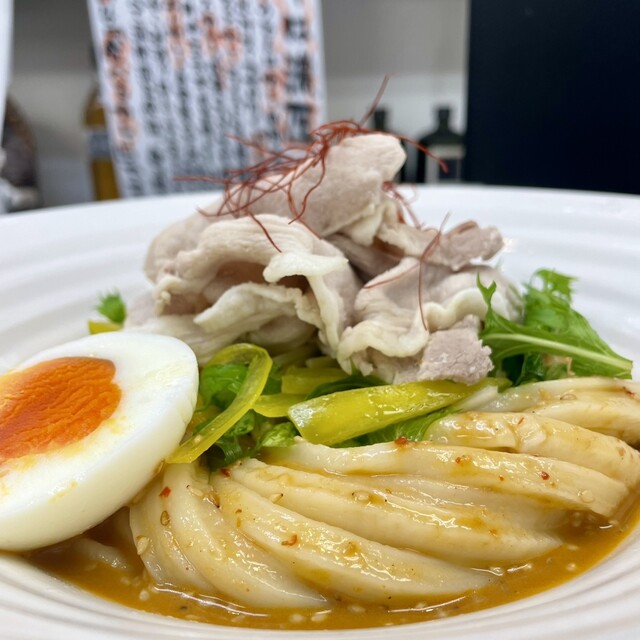 うどん、豚しゃぶとの相性も抜群で、暑いこの期にぴったりなうどんです。」