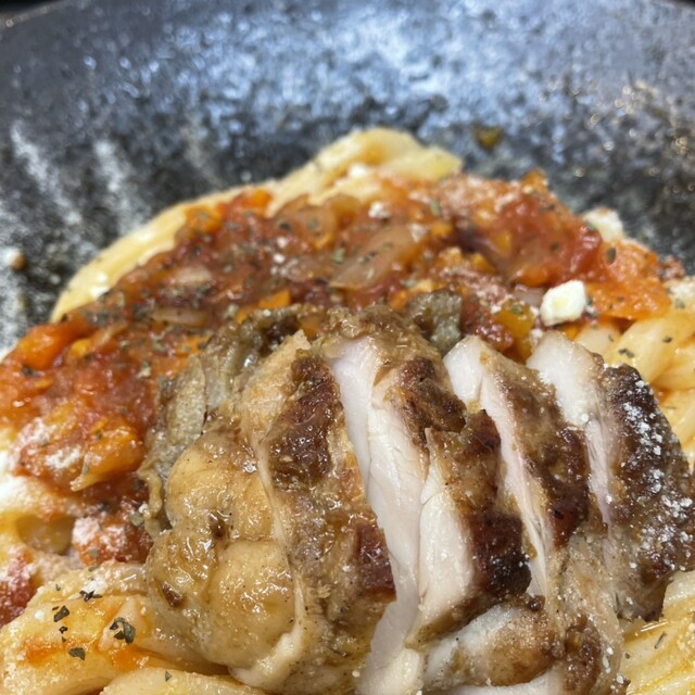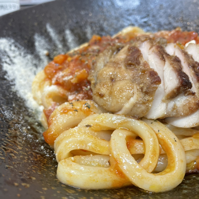 鶏肉とトマトのイタリアン風うどん、めっちゃ旨かった〜〜〜
