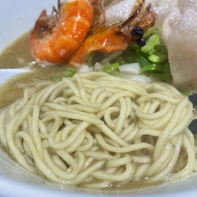 鶏の旨みたっぷりの鶏白湯スープに濃厚な海老の風味やコクが加わって、めっちゃエビ〜な、最高のラーメンに仕上がってましたわ。