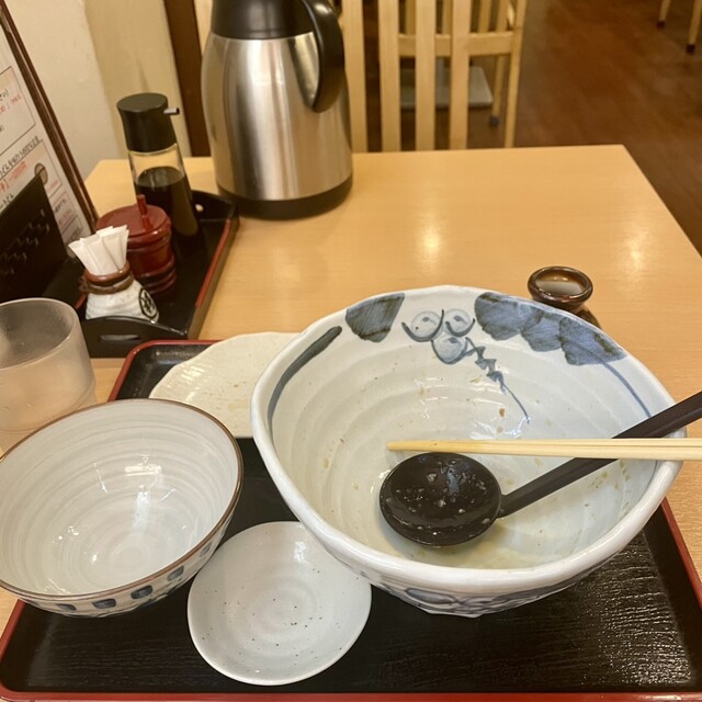 JR環状線玉造駅から鶴橋駅間の東側、疎開道路沿いにあるお気に入りのうどん屋さん「うどん上々」で、「まぜ麺 ver.2 + 〆めし付き(ちょこっとご飯)」を頂きました。